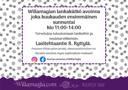 WILLAMAGIAN VERKKOKAUPAN LANKAKÄTKÖ ON AVOINNA KUUKAUDEN ENSIMMÄINEN SUNNUNTAI KLO 11-14.